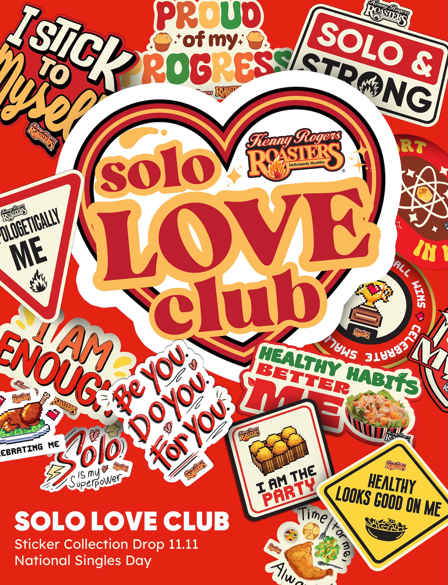 With three unique designs for each Solo Love Language (collect a total of 15 designs), the stickers are tangible symbols of individuality. The ‘I Stick To Myself’ Sticker Collection officially drops on National Singles’ Day, November 11, available in limited supplies across all Kenny Rogers Roasters stores.